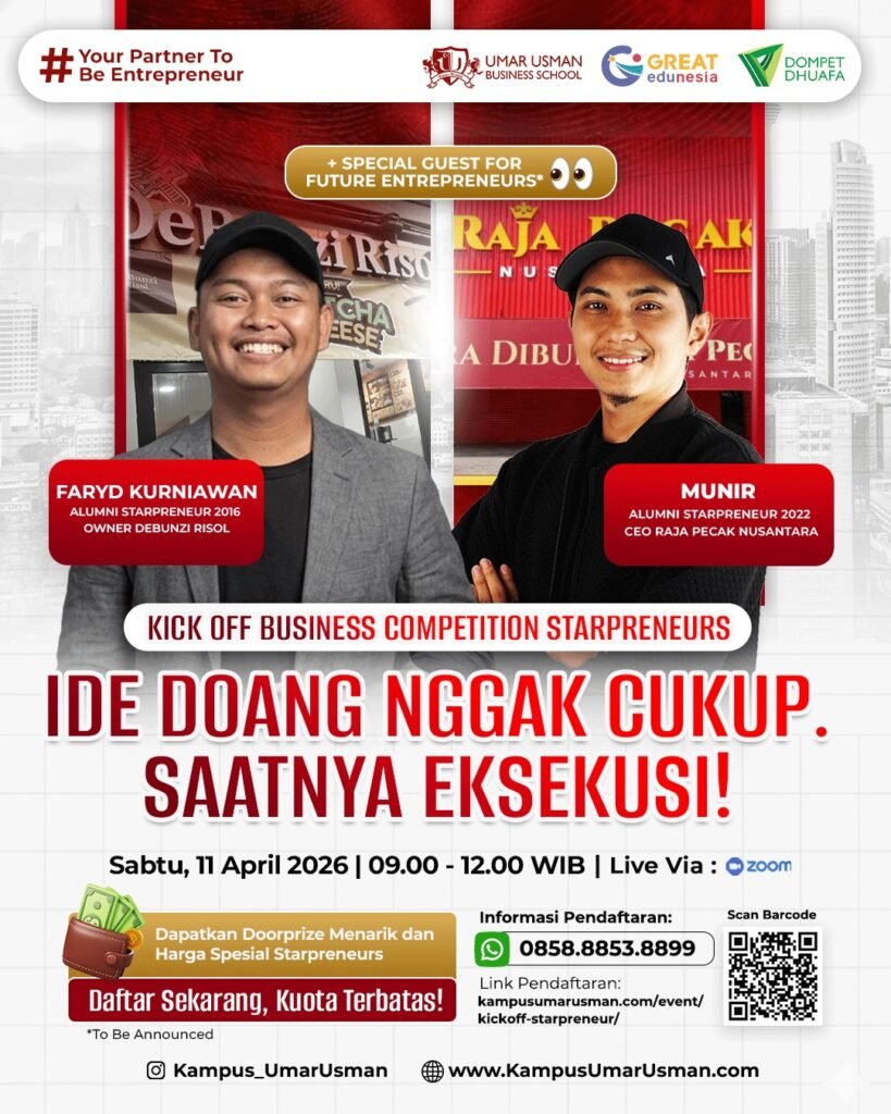 “Bersama Umar Usman, saatnya kamu membangun masa depan, menghadirkan kebermanfaatan, dan ikut menyukseskan Indonesia melalui wirausaha.”